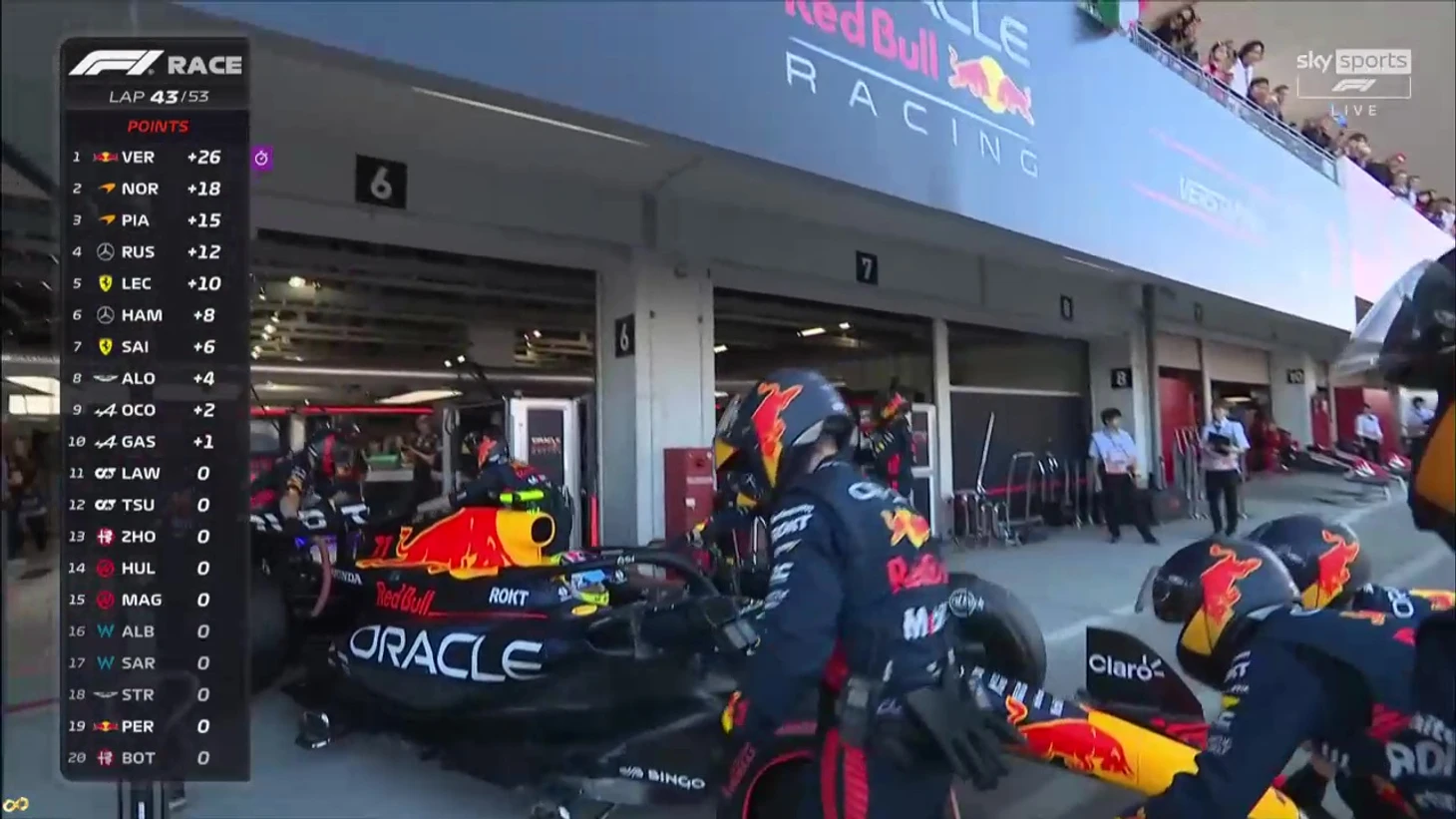 Но зачем? Ради лучшего круга? Он точно не получит очки, к тому же лучший круг сейчас у Ферстаппена. Или просто нужно что-то проверить в работе машины?