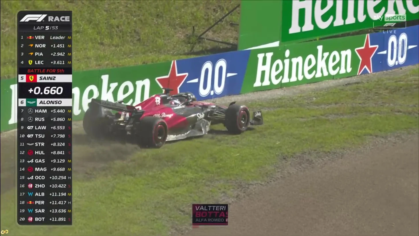 И вернулся на трассу перед Леклером, 5-м, но позади Расселла в 8,5 секунды.