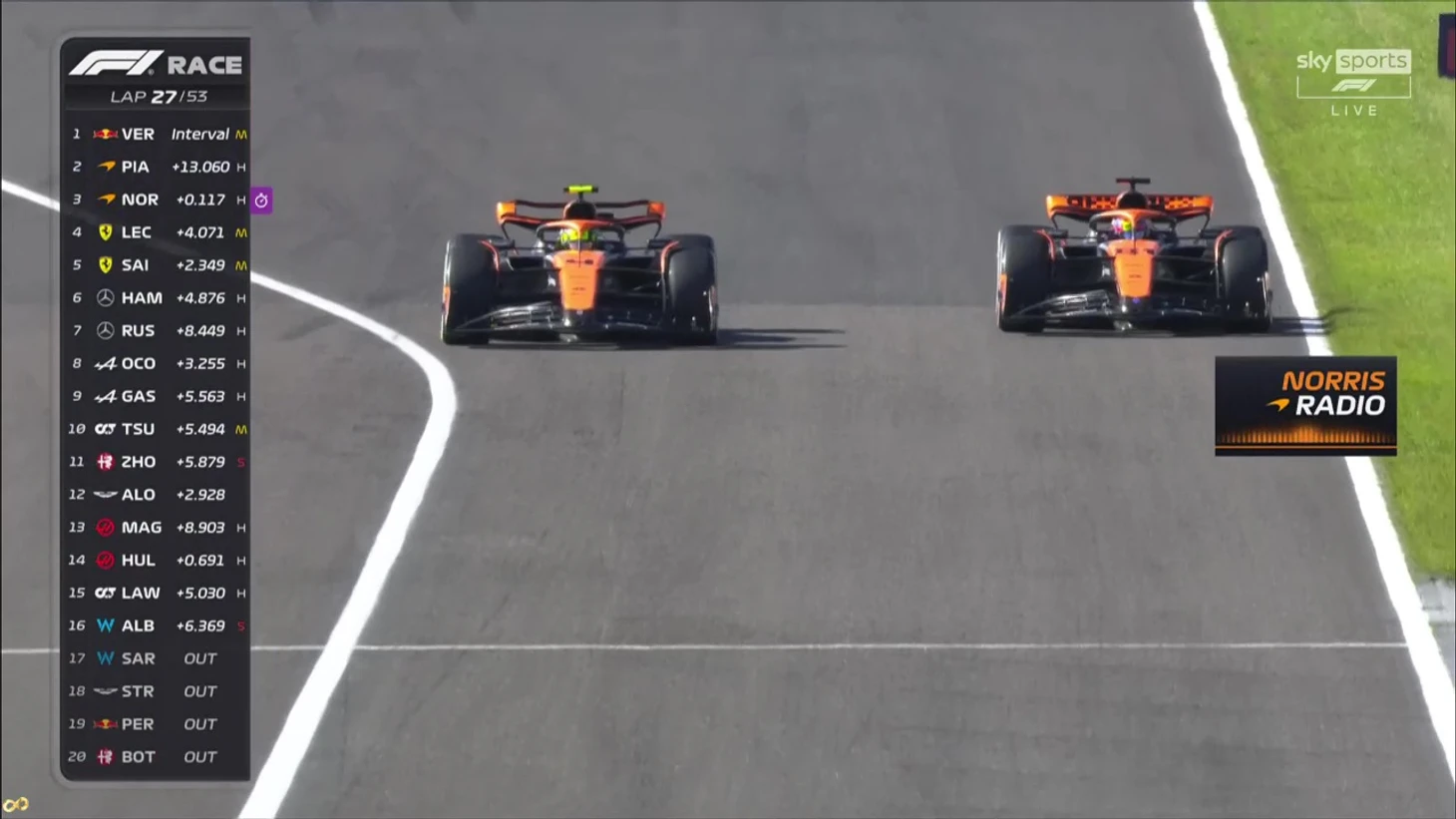 Норрис догнал Пиастри, но тот почему-то не подумал пропустить лидера команды: