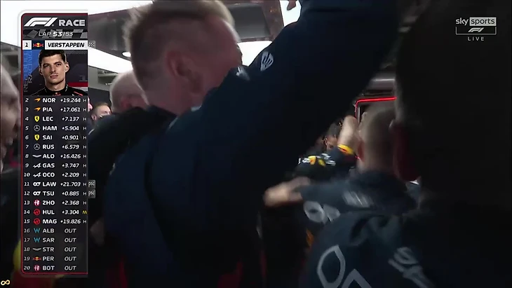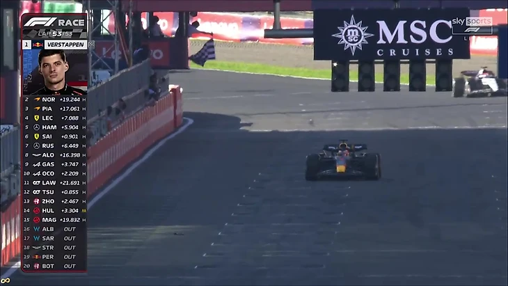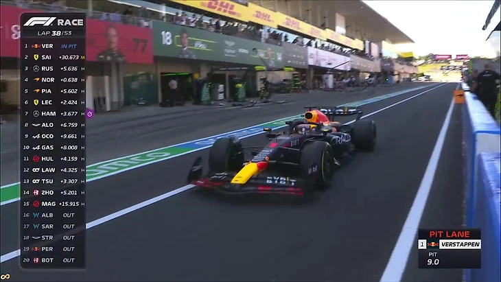Макс в порядке. Нам решили напомнить, что он все еще едет в этой гонке. Отрыв от Норриса - целых 14 секунд.