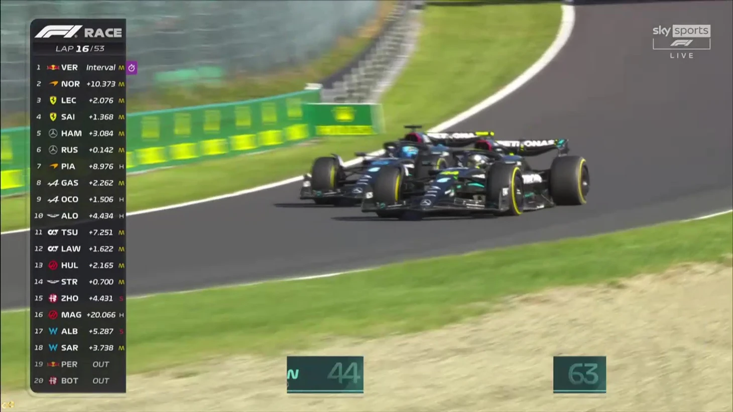 Хэмилтон потерял сцепление в шпильке, его тут же достал Расселл, а затем уже семикратный выпихнул напарника.