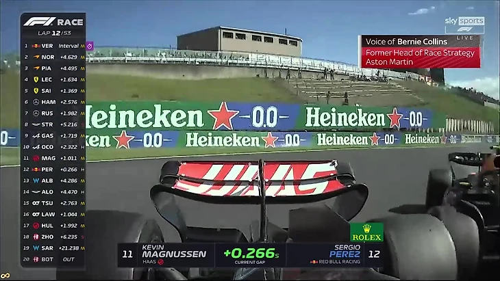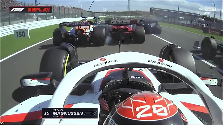 Чеко атаковал Магнуссена, но не рассчитал и влетел в заднее колесо «Хааса»! Бело-черную машин развернуло! Ждем новый штраф для «Ред Булл».