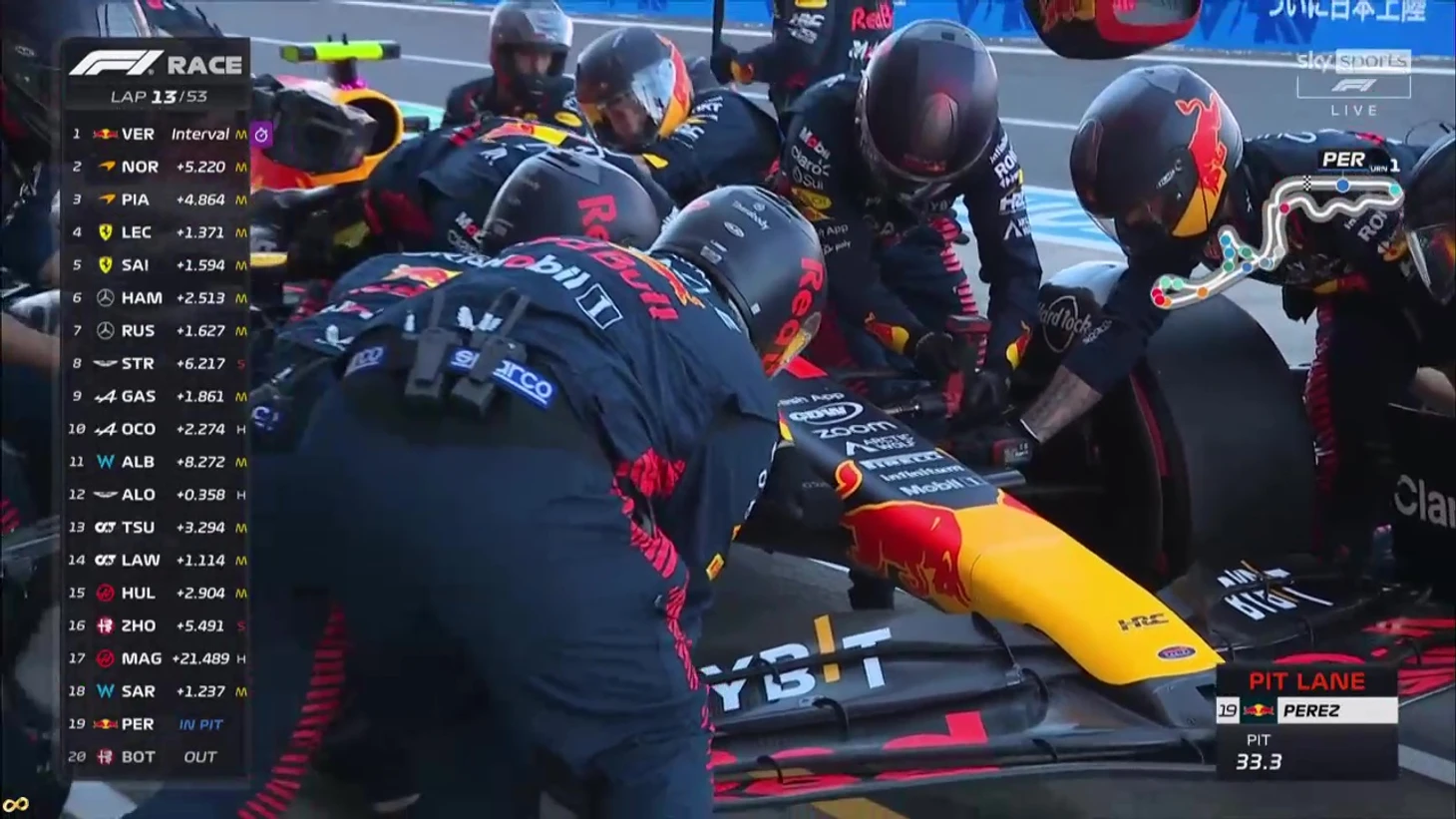 Перес уже на пит-лейн, поменяли переднее антикрыло
