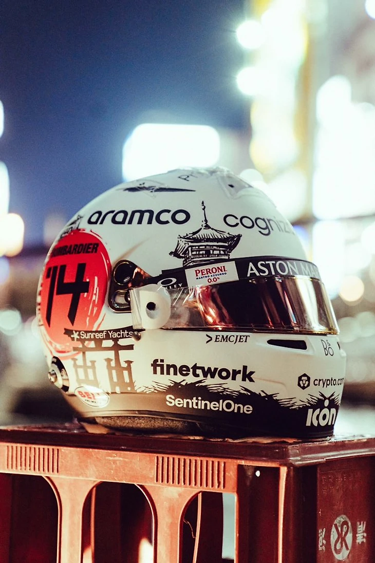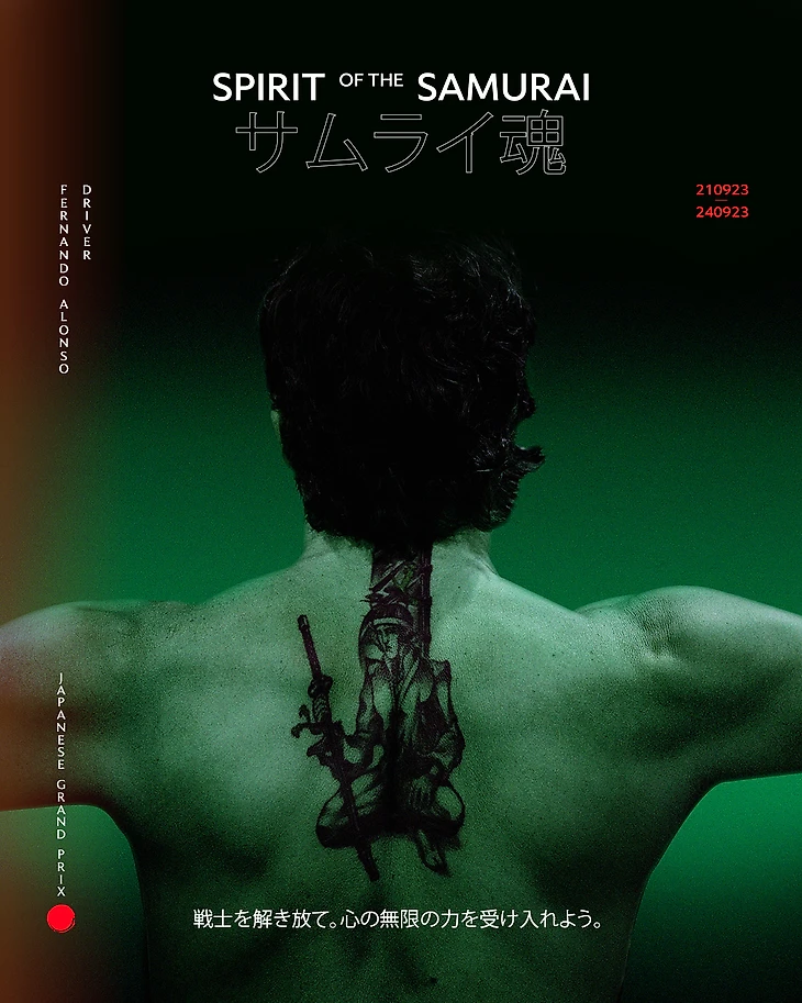Самурайскую тату Алонсо перенесли на шлем и постер к Гран-при Японии. Визуальный пир!