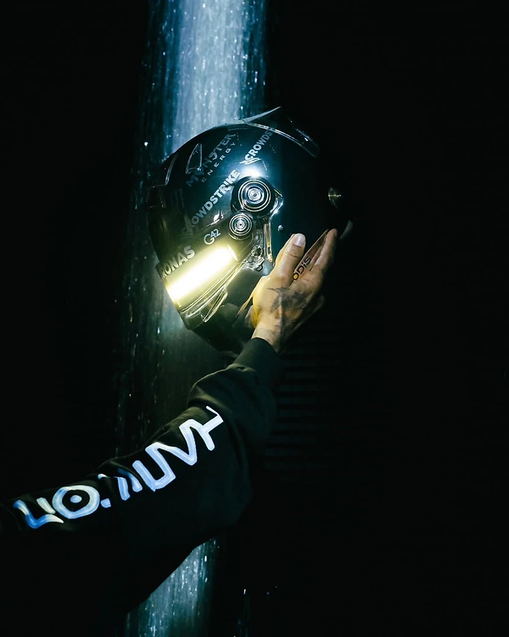 А красочные съемки кампании для мерча и шлема проходили в помещении TeamLab – объединение японских дизайнеров, художников, программистов, инженеров и математиков. Они вместе с 2001-го создают цифровые и «павильонные» новые реальности. Главная идея – игра света с самыми причудливым физическим окружением.
