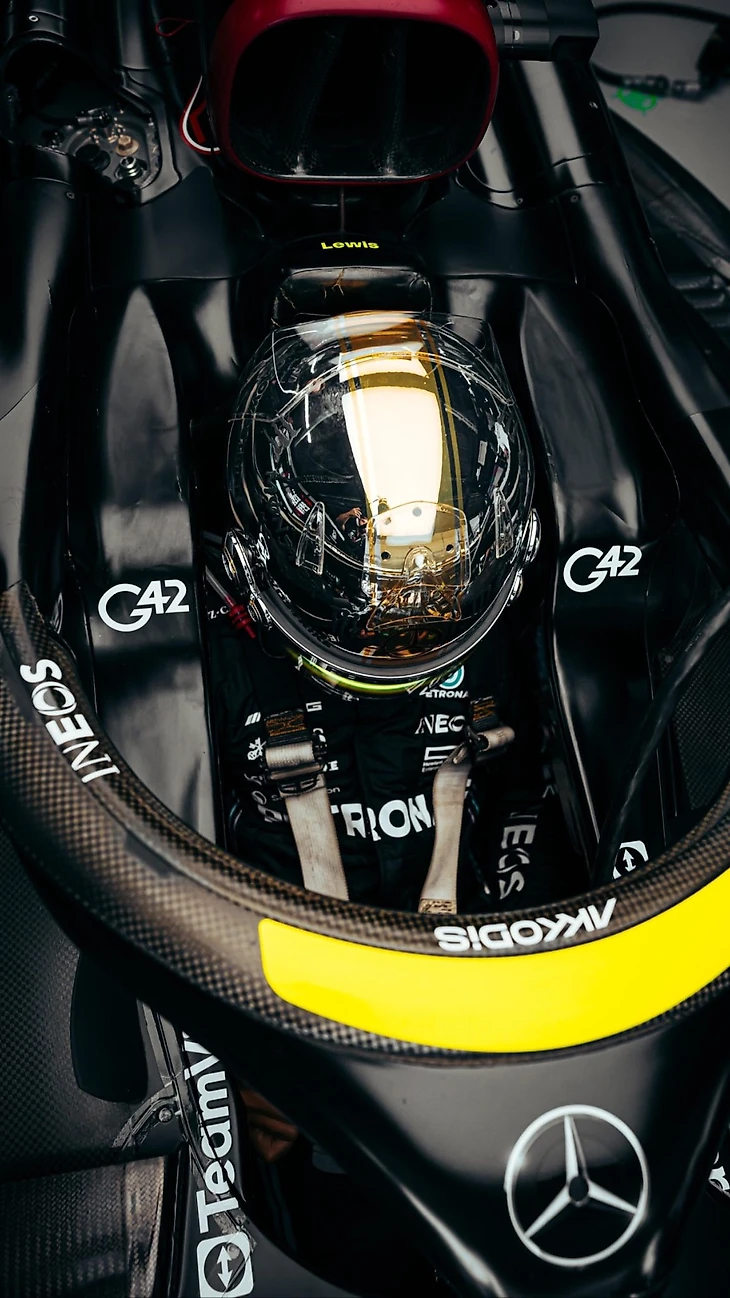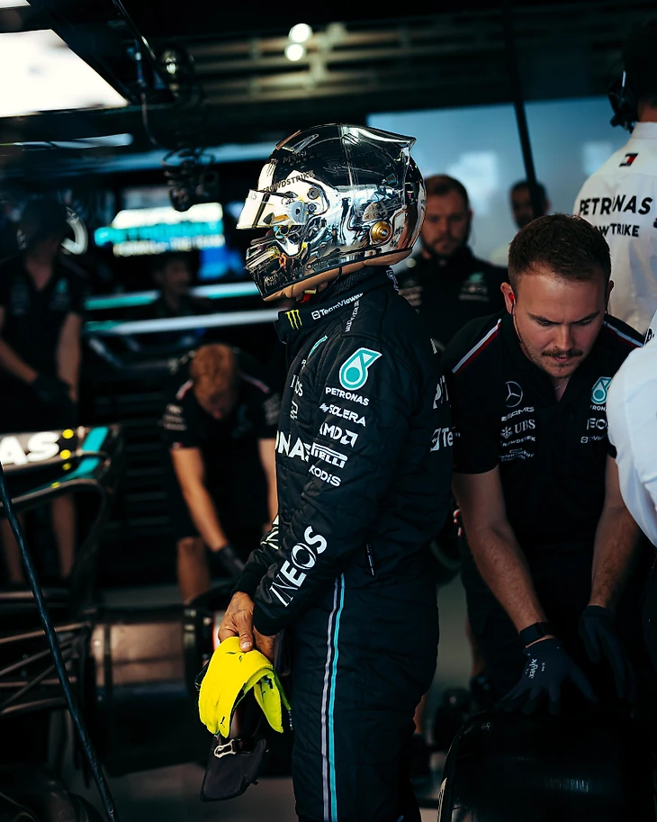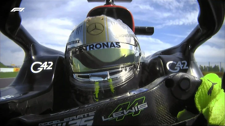 И на треке еще не видна лазерная полоса, как у Циклопа – видимо, не прошла по требованиям безопасности ФИА. Но в паддоке перед заездами Льюис ее включал!