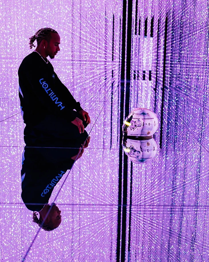 Особый шлем Хэмилтона – 😍 В стиле Daft Punk и с лазерной полосой как у Циклопа! Правда, на трассе она не светится