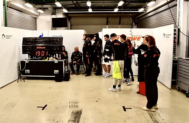 В заключительные минуты перед клетчатым флагом вся команда G-Drive Racing собралась у пункта управления в боксе, надеясь, что на этот раз их экипажу удастся избежать повторения случая на «Игоре Драйв». И это случилось – Роман Русинов довел прототип до победного финиша на Moscow Raceway, стартовав с последнего места!