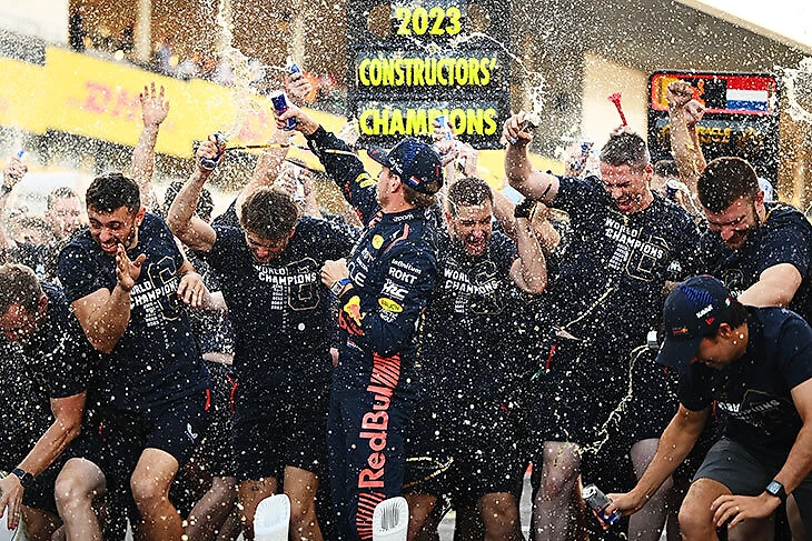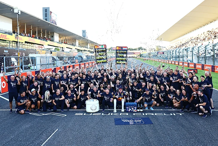 «Ред Булл» выиграл второй Кубок конструкторов подряд и вновь празднует на Гран-при Японии: родном этапе своего моториста – «Хонды». Автоконцерну принадлежит трасса «Сузука», титульное спонсорство заезда, сборочное производство двигателей для чемпионов и их второй команды «Альфа Таури» – справлять триумф каждый раз здесь достаточно символично. В прошлом году все совместно радовались титулу Ферстаппена, а теперь – победе в Кубке!