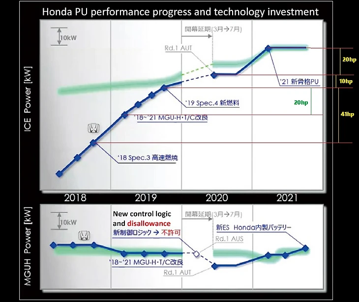 Также сильнейшей стороной «Хонды» стала стабильная работа мотора на возвышенностях и в других условиях повышенных требований к турбинам. Крайне важная фишка для треков вроде Гран-при Австрии, Мексики, Бразилии и других жарких локаций, где падает плотность воздуха – и турбомотору V6 приходится работать активнее обычного.