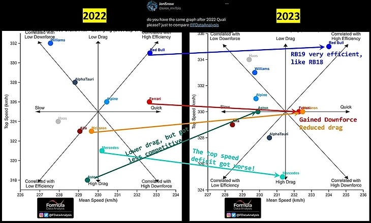 Однако за весь 2023-й аэрообвес «Ред Булл» получил уже достаточно постоянных и заслуженных аплодисментов и восхищений, а про моторную часть уже почти не вспоминают.