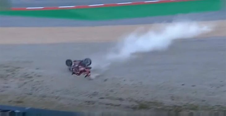 Но ни одна авария и последствия до сих пор не могут сравниться с крэшем Пола Эспаргаро во второй практике первого Гран-при сезона в Португалии. Причем не на быстром круге, а на прогревочном, после выезда из боксов: