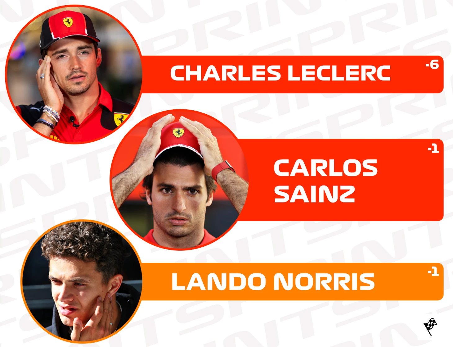 Лишь трое пилотов финишировали ниже стартовой позиции. Главным разочарованием этот спринт стал для Шарля Леклера: после заезда судьи наказали монегаска прибавкой пяти секунд к итоговому времени за неоднократное нарушение границ трассы. Это отодвинуло Леклера с 7-го на 12-е место.