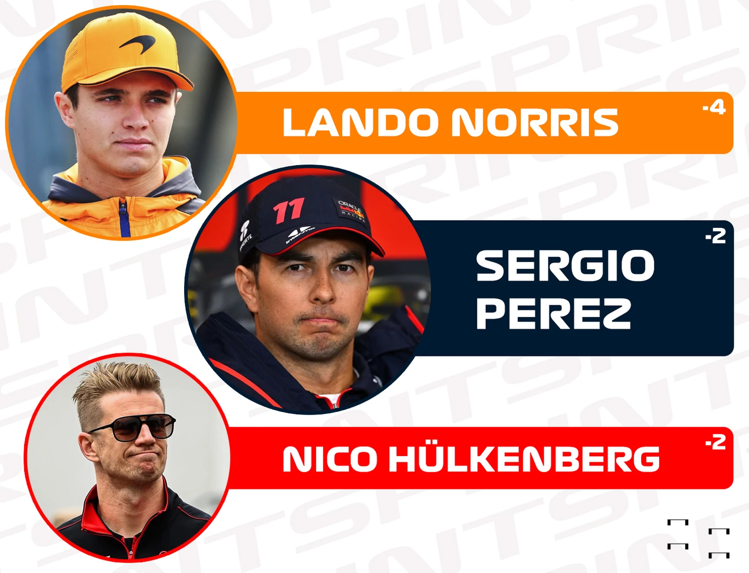 По 2 позиции потеряли Серхио Перес, Нико Хюлькенберг и сам Ферстаппен, уступивший Расселлу и гонщикам «Феррари» (все трое стартовали на шинах с красным ободком).