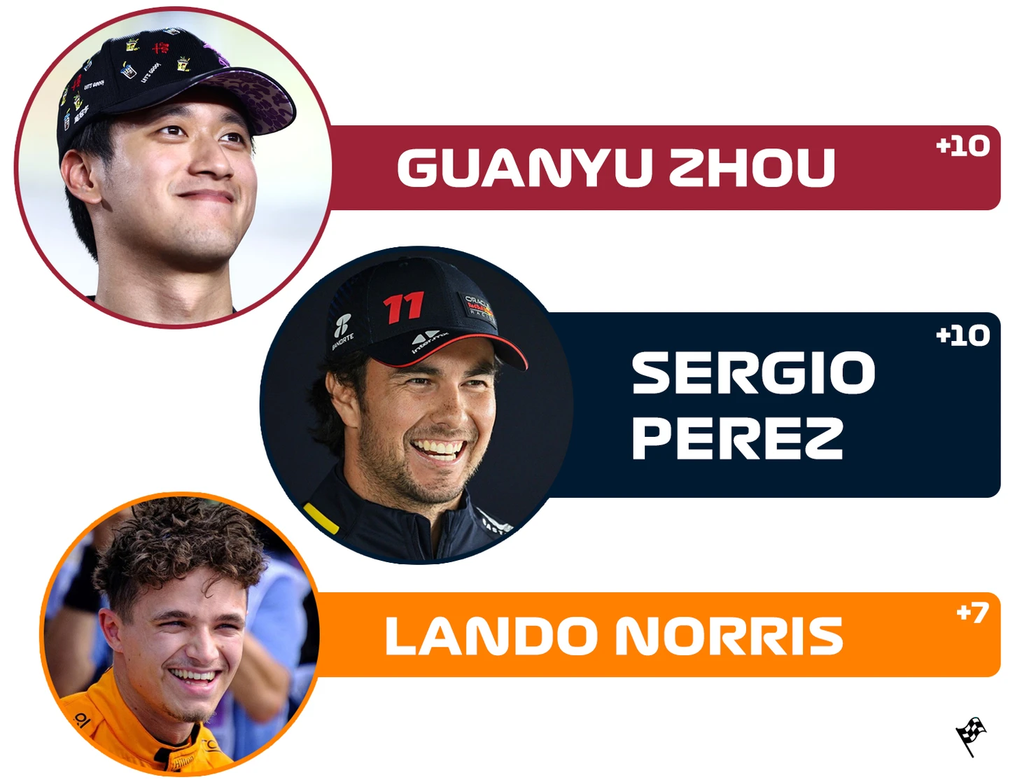 Финиш гонки преподнес свои сюрпризы. Ландо Норрис, приехавший на подиум, и Серхио Перес, с пит-лейна прорвавшийся в топ-10, - это, в целом, ожидаемый результат. А необычно здесь видеть имя Гуанью Чжоу, который мало того что оказался в призовой десятке, так еще и Переса опередил.