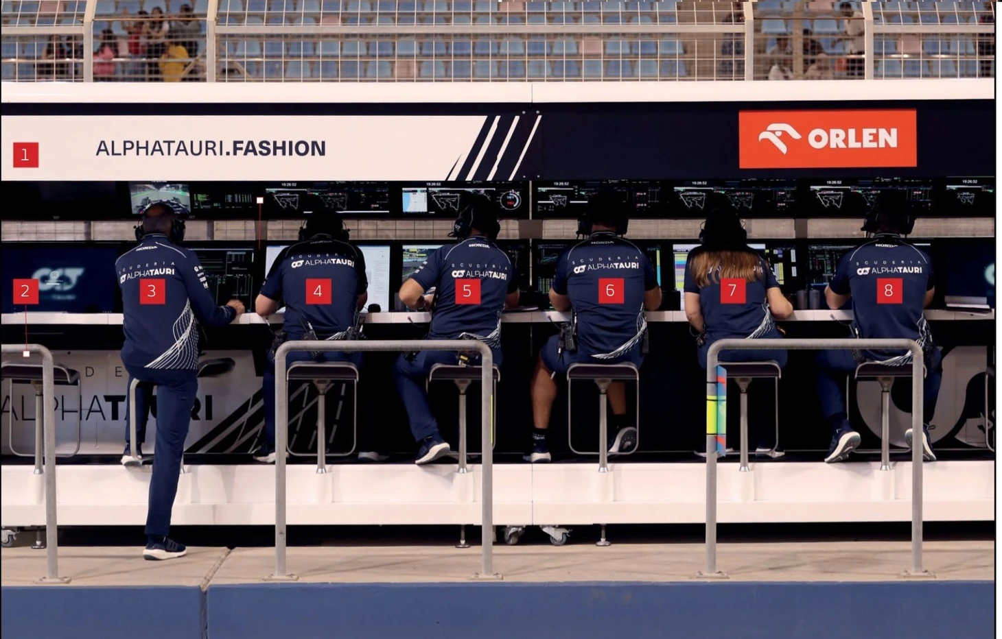 Две позиции справа для гоночных инженеров. Вы можете видеть Пьера Хэмлина, который работал с Ником де Врисом на момент фото с предсезонных тестов. Поэтому тут нет Маттиа Спини, так как мы тестировали только одну машину. На базе работает множество специалистов: инженеры по развитию, инженеры по аэродинамике, инженеры по шинам – и все они анализируют данные с машины, передают их гоночному инженеру, а тот уже старается сделать все для своего гонщика. Формула 1 состоит из компромиссов. Каждый старается сделать максимум в своей области и не всегда это то же самое для разных людей. Работа гоночного инженера состоит в том, чтобы собрать всю информацию, имея в виду гонщика, погоду, состояние трассы, тип трассы, найти общее решение и выдать его своему гонщику.