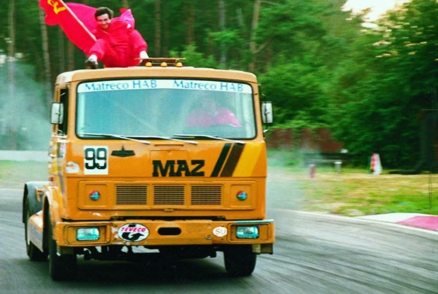 Менее чем через три недели после начала работ готовые машины поехали на тесты в Грузию, где в местечке Рустави недалеко от Тбилиси располагался один из немногих советских автодромов. А после испытаний грузовики ждал долгий путь в Венгрию. Причем трем «МАЗам» пришлось проделать его не на прицепах, как полагается спортивным болидам, а наоборот, с ними! Ни на заводе, ни в «Совтрансавто» еще толком не понимали, как устроен трак-рейсинг, поэтому отправлять в заграничный рейс пустые грузовики, пускай даже гоночные, посчитали расточительством.