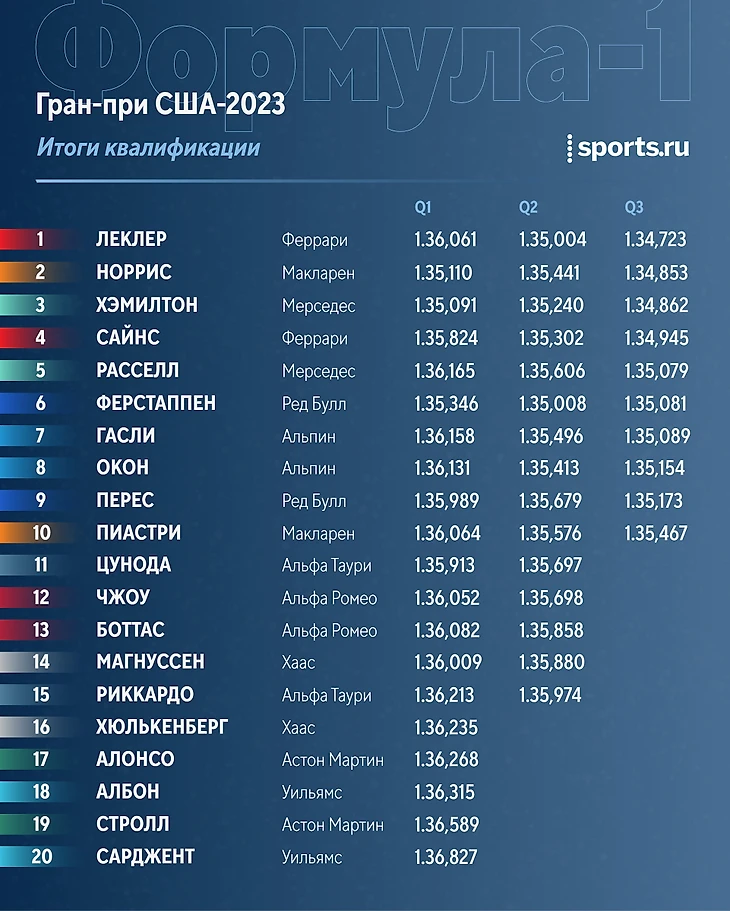 У «Ред Булл» снова фулхаус из проблем: спринтерский уик-энд с одной практикой и характерная «Трасса Америк» с огромным количеством кочек, отвратительным асфальтом и большими требованиями к прижимной силе. Главная сила RB19 – превосходная работа днища как раз на прижимную силу, однако на таких треках дорожный просвет нужно слегка поднимать, чтобы не ломать детали на кочках, и разрыв между «Ред Булл» и соперниками сокращается. Как раз достаточно, чтобы конкуренты за счет максимального риска могли дотянуться до Ферстаппена и немного на него надавить. Обстоятельства похожи на провал на Гран-при Сингапура, только не настолько суровы на этот раз.