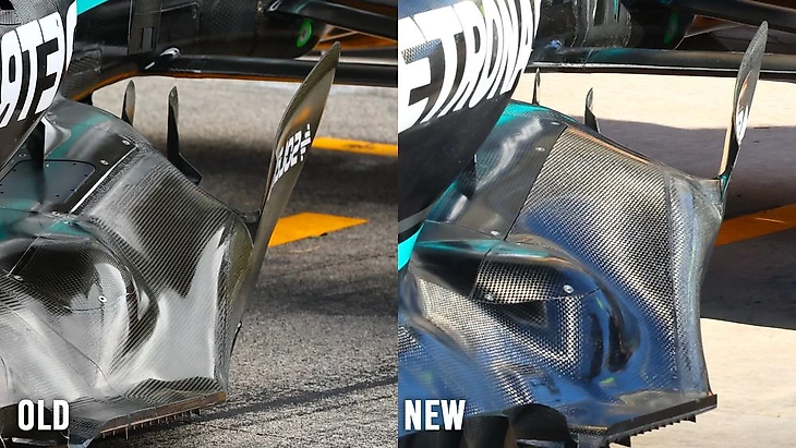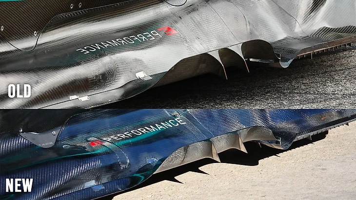 «Мерседес» изменил входные кромки днища – геометрию воздуховодов и трубок для смещения аэродинамического баланса назад, по желаниям Хэмилтона: