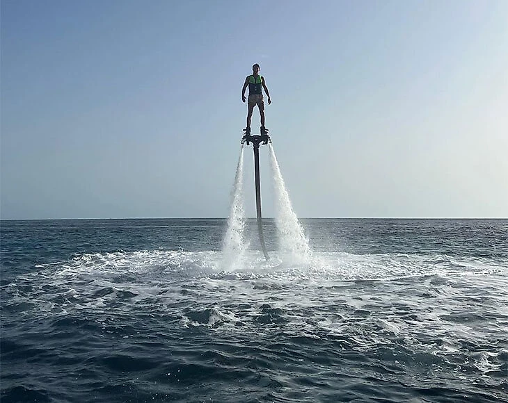 Но да, короче говоря, я учился фойлсерфингу в Испании. Это доска для серфа с небольшим крылом снизу, оно рассекает воду, а доска плывет по поверхности. В первый же день я упал, крыло встретило мое запястье и немного его стесало.