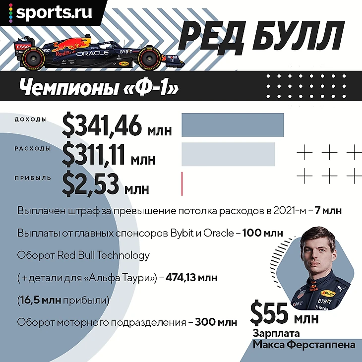 Кстати, зарплата Макса Ферстаппена в 55 млн долларов составляет аж 16% выручки чемпионской команды!