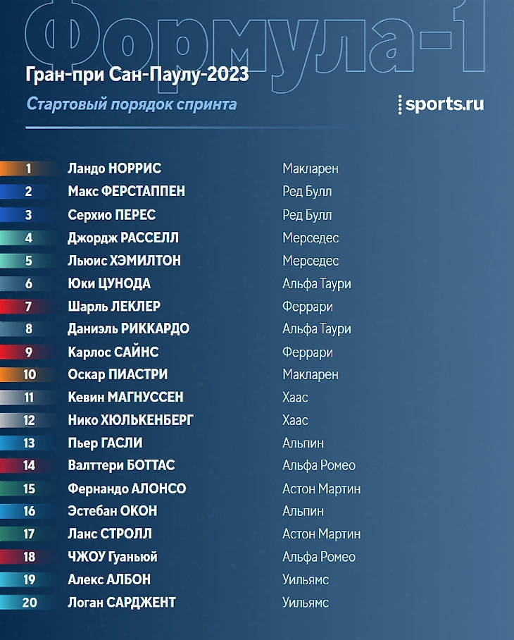 В прошлом сезоне в Сан-Паулу также проводили уик-энд со спринтом, и тогда было много сюрпризов: поул в пятничной квалификации у Магнуссена (тогда определялся стартовый порядок не на воскресенье, а на субботу), первая победа Расселла в карьере (в основной гонке). Сейчас из интересного у нас спринт-поул Норриса. Будем надеяться, дальше будет только лучше.