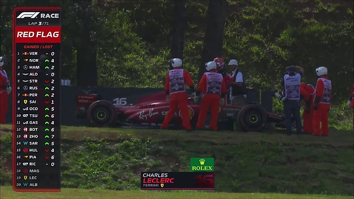В ФИА решили не мелочиться, посмотрев на количество обломков на трассе и поврежденные барьеры - и остановили заезд красными флагами!