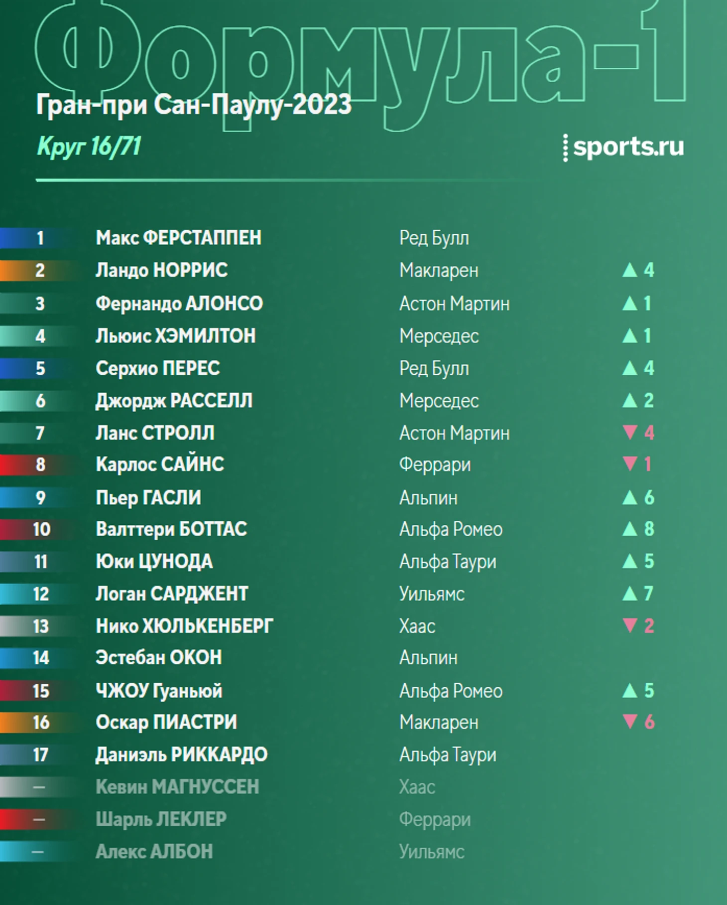 - Стролл, кстати, поддержал напарника и тоже провел достойную гонку. 5-е место поможет команде в Кубке конструкторов.