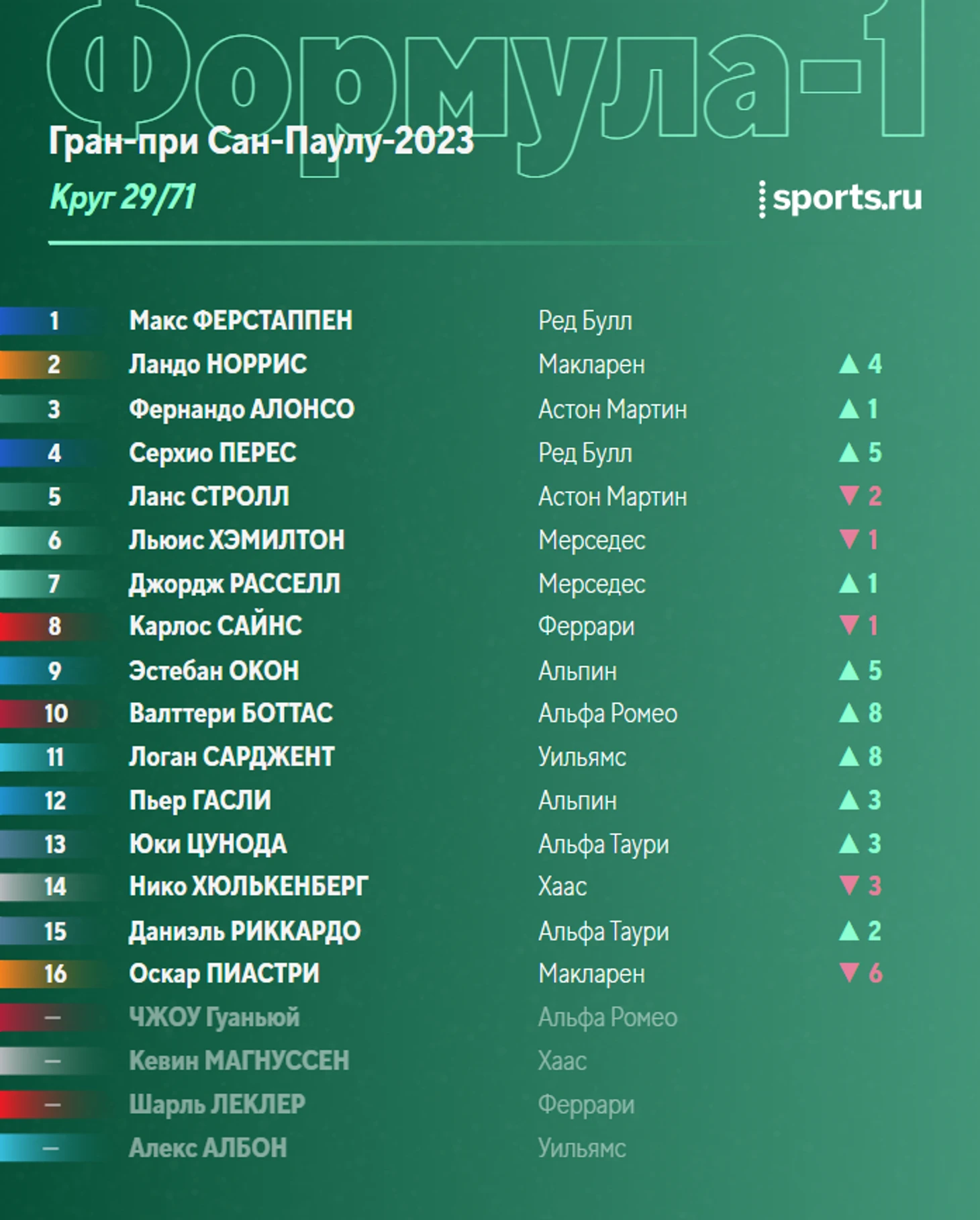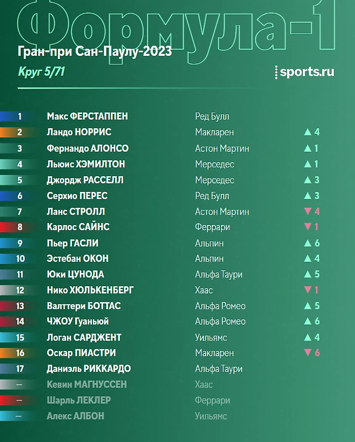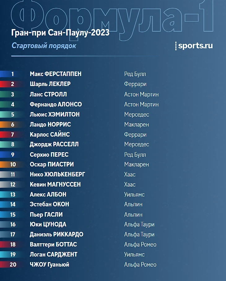 Любопытный факт. Последние пять победителей Гран-при Бразилии в том же сезоне до этого выигрывали квалификацию к Гран-при Венгрии. Начиная с 2017 года (за исключением 2020-го, когда гонка не проводилась), победы в Интергалосе доставались: Феттелю, Хэмилтону, Ферстаппену, снова Хэмилтону, и Расселлу. Если закономерность сохранится, сегодня должен победить…Льюис!