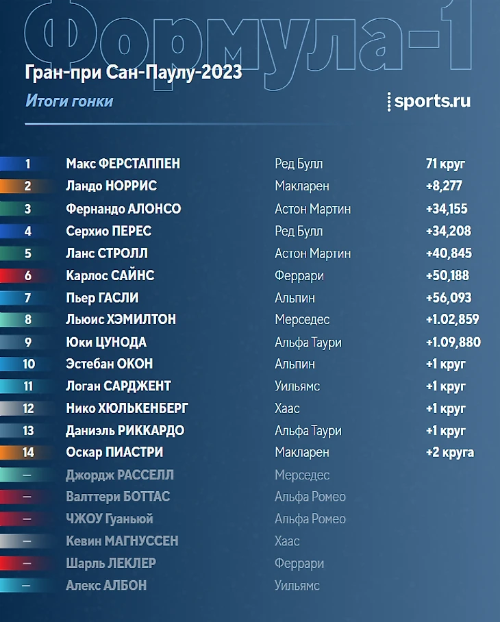 Ферстаппен победил, Норрис все-таки второй – темпа «Макларена» не хватило. Успешная гонка для «Астон Мартин» и «Альпин» и просто кошмар для «Мерседеса»!