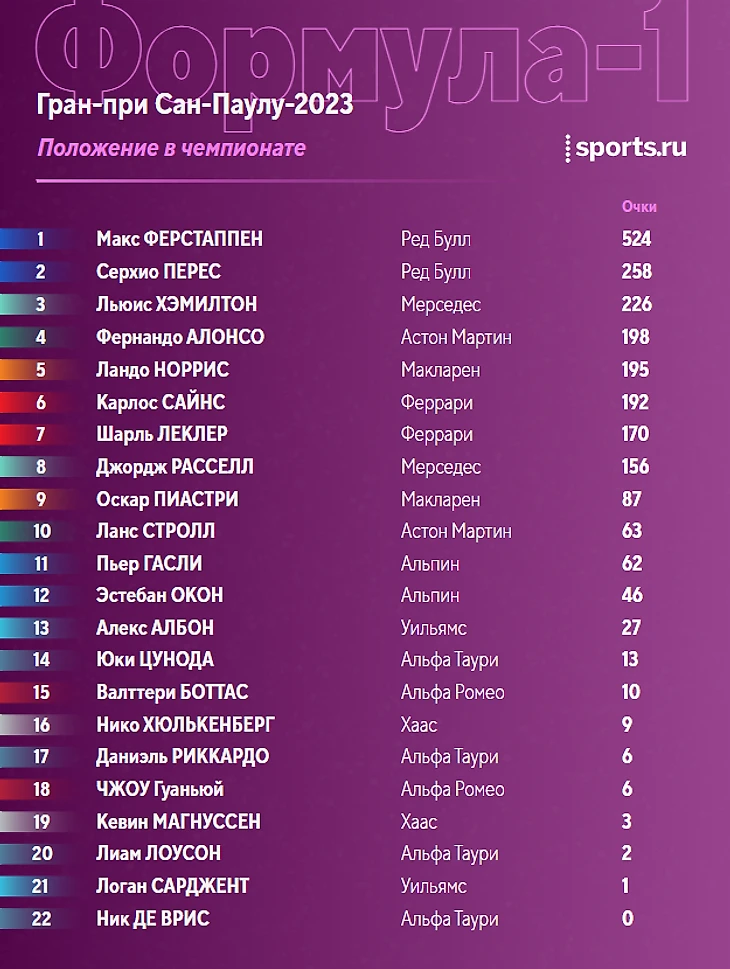 Главная гонка «Формулы-1» на Гран-при Бразилии в Сан-Паулу ожидалась событийной, ведь хаотичная ураганная квала поставила главных соперников последних сезонов Ферстаппена и Леклера друг против друга на первый ряд, а на второй забросила «Астон Мартин» в полном составе. И спринт доказал: темп зеленой команды относительно всех соперников по пелотону гарантирует сюрпризы.