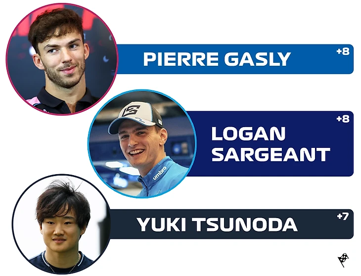 По количеству отыгранных позиций лидером стал Пьер Гасли - француз залетел в топ-7, стартовав с 15-го места. Также на 8 строк в итоговом протоколе поднялся Логан Сарджент - американец избежал последствий аварии его напарника и в целом провел довольно аккуратную гонку, правда, до очков опять не дотянулся.