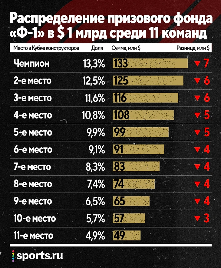 В 2022-м «Ф-1» заработала $2,57 млрд. По Договору согласия на призовые идет 45% – или $1,157 млрд. Правда, еще есть оговорки: