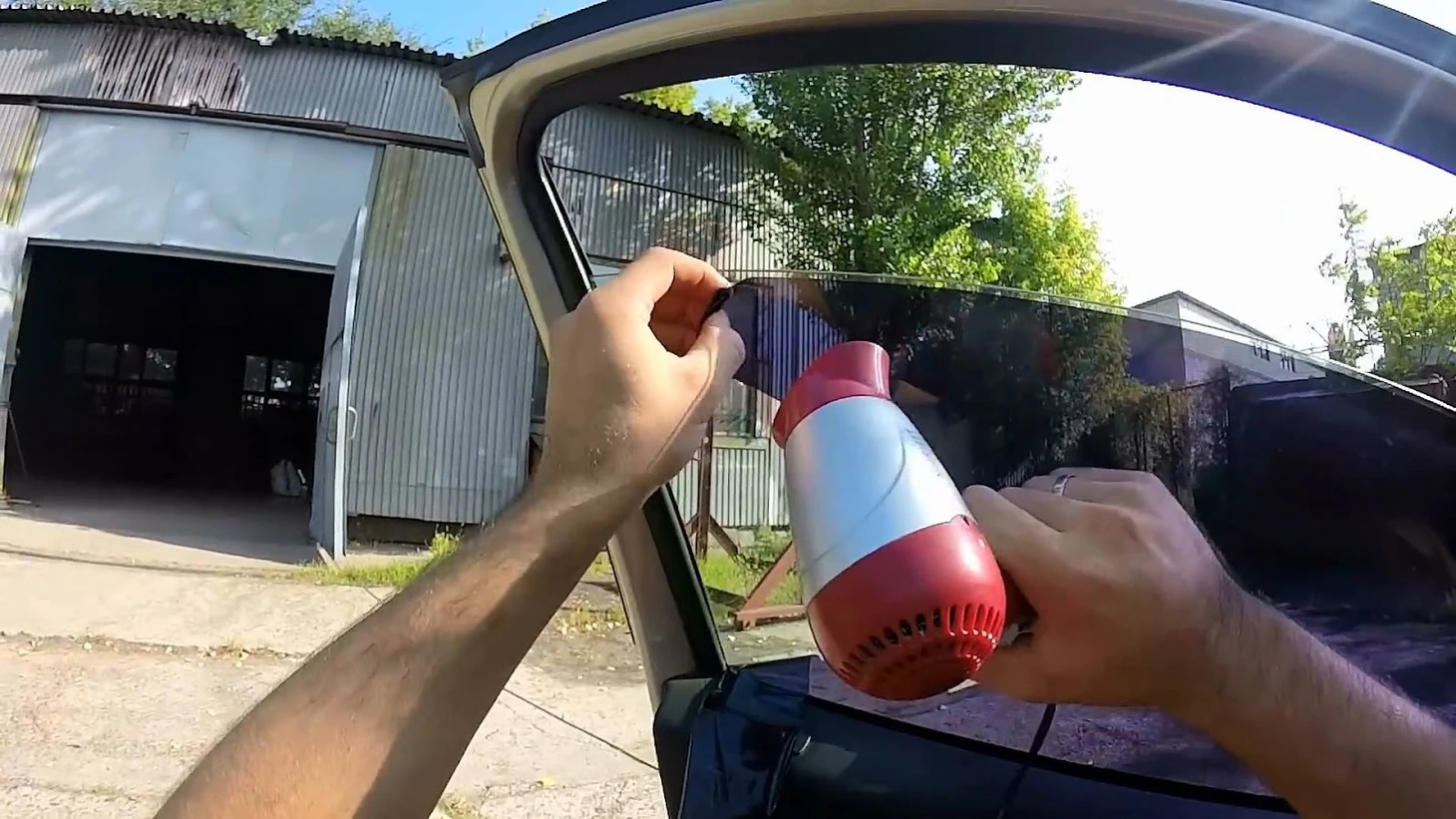 только достаточно высокая температура воздуха может гарантировать успешное освобождение от тонировки с помощью фена и моющей бытовой химии;