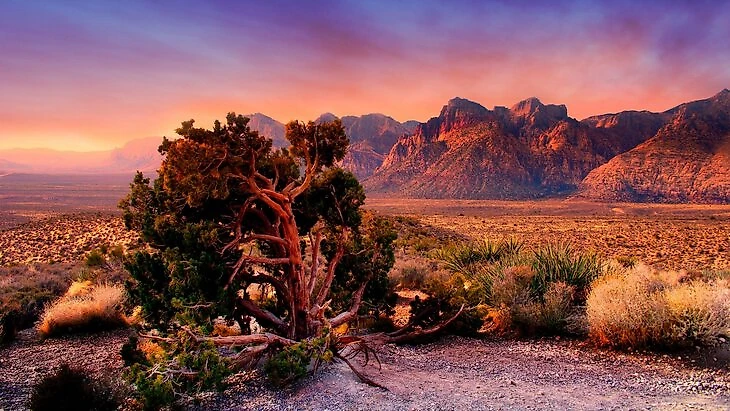 Однако не менее красивая альтернатива находится всего в получасе езды от мегаполиса. Каньон Ред-Рок занимает миллионы квадратных метров пустыни Мохаве и виден с Лас-Вегас-Стрип, но чтобы в полной мере оценить красоту этой национальной заповедной зоны, стоит взять напрокат автомобиль и проехать 20 км в одну сторону по ярко окрашенным скальным образованиям из песчаника ацтеков возрастом 180 млн лет.