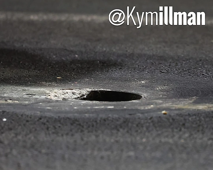 Откуда такие повреждения? Просто взгляните на люки Вегаса: только толщина асфальта – 25 см, а сами конусы цилиндрической формы с кусками труб, и крепятся на бетон – их нельзя заварить, как на любых других трассах: