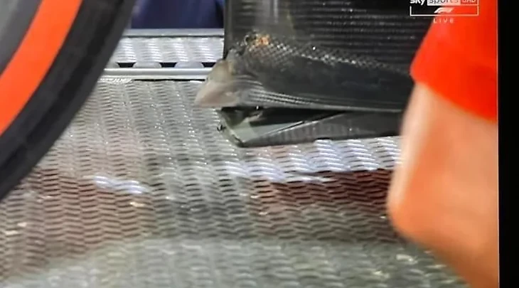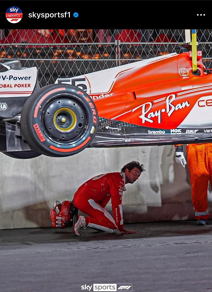 Это болид «Феррари» Карлоса Сайнса наехал на «подтянутый» из пазов предыдущей машиной «Уильямса» Алекса Албона дорожный люк – и подскочил!