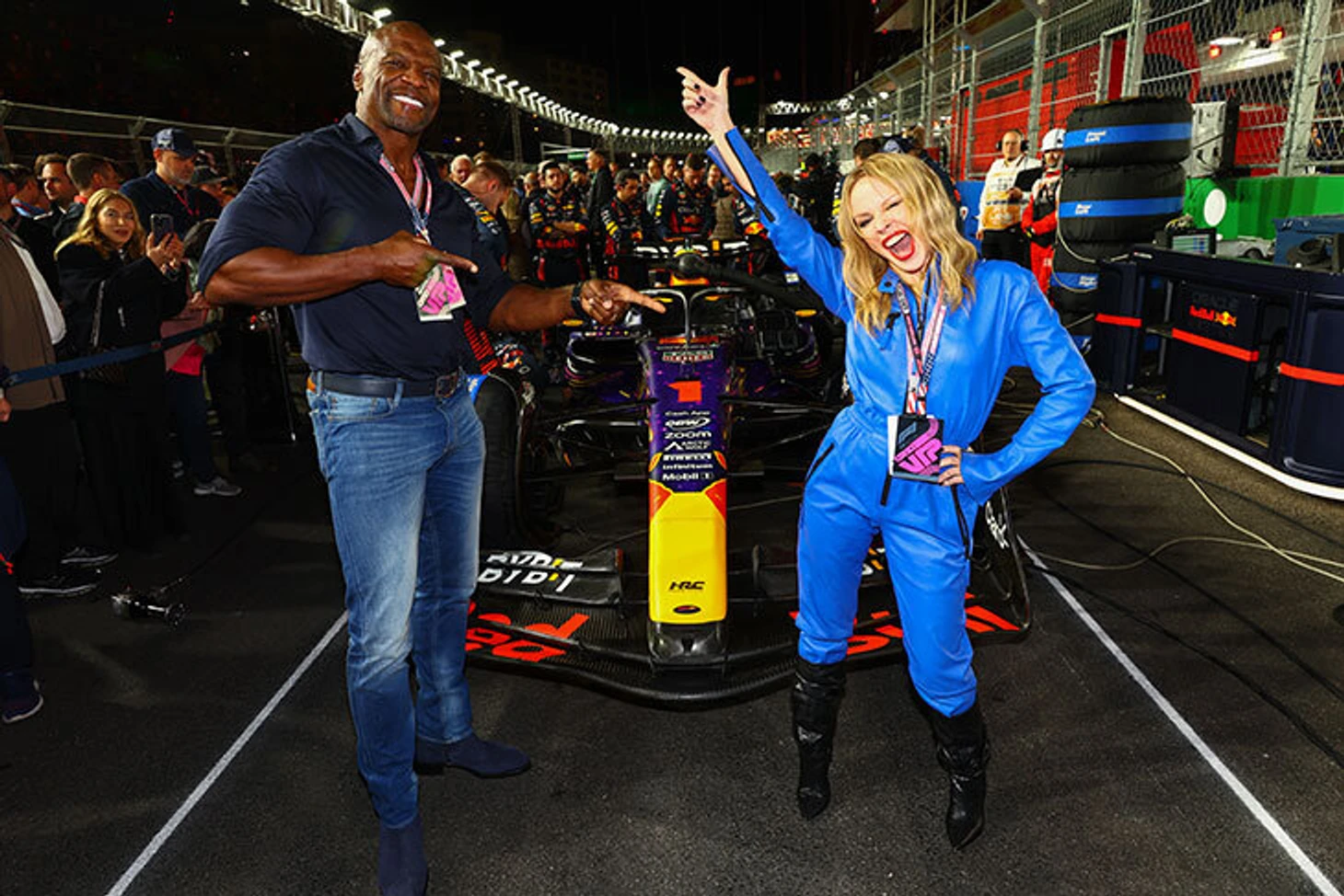 Кайли Миноуг тусила в паддоке все три дня – ведь она выступала еще на шоу-открытии Гран-при. С ней – бывший футболист и актер из «Неудержимых» Терри Крюс.