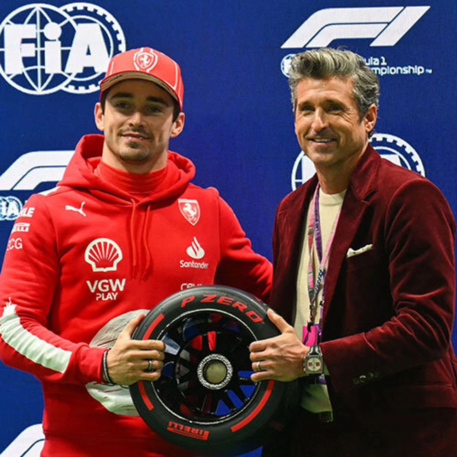 Актер и гонщик Патрик Демпси – ловите его в новом фильме об Энцо Феррари – вручал приз обладателю поула: