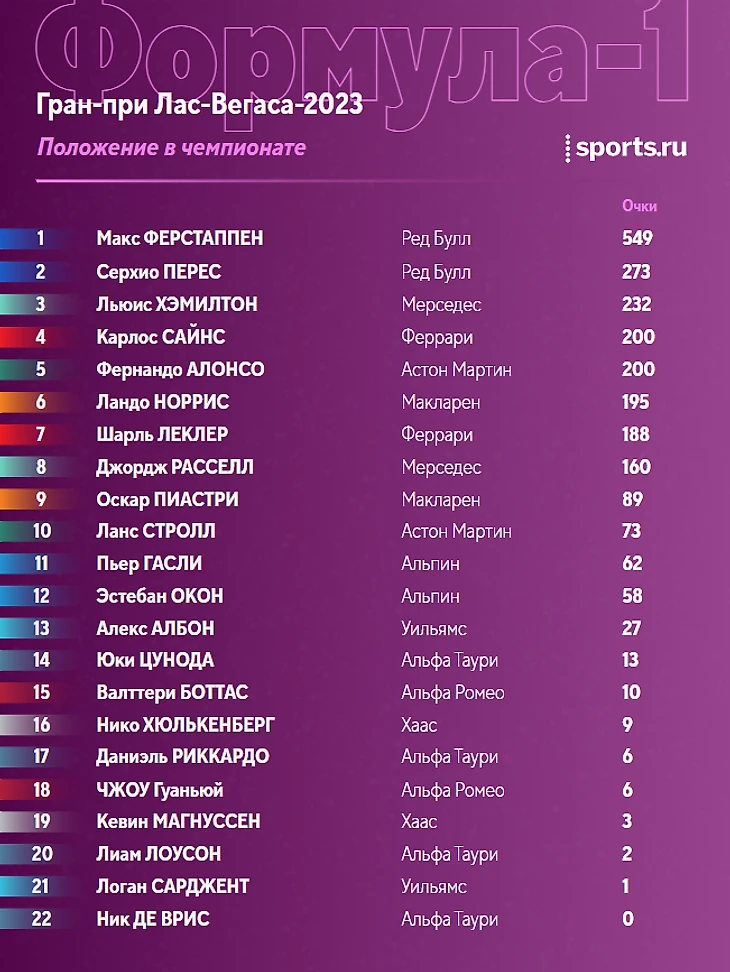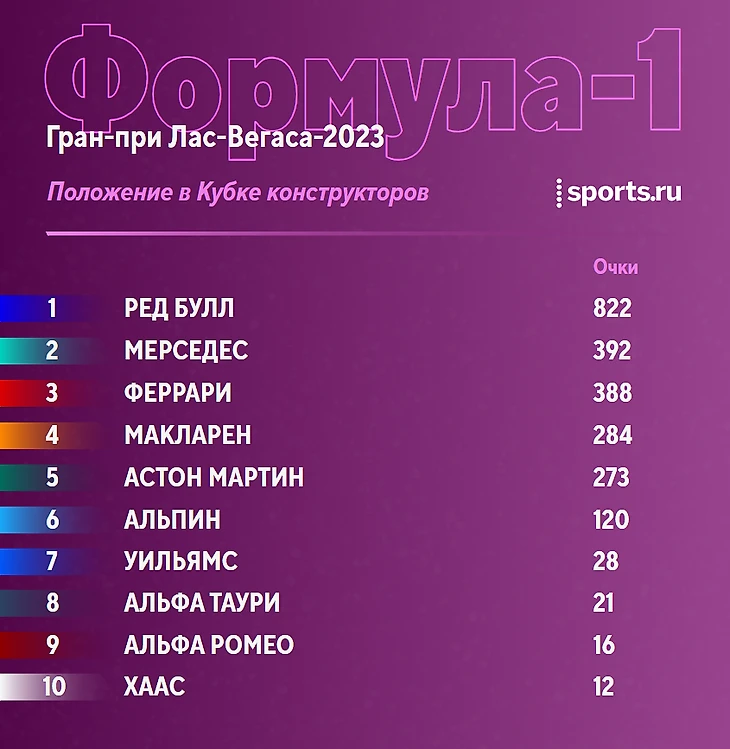 «Макларен» и «Астон Мартин» продолжают борьбу за 4-е место. Тут «Макларен» впереди сразу на 11 очков и Алонсо и Строллу нужно чудо, чтобы помочь команде все-таки отыграть позицию.