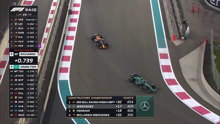С точки зрения борьбы с «Феррари» в Кубке конструкторов дела у «Мерседеса» пока идут не очень. Расселл застрял за Пиастри, а Хэмилтон за Пересом.