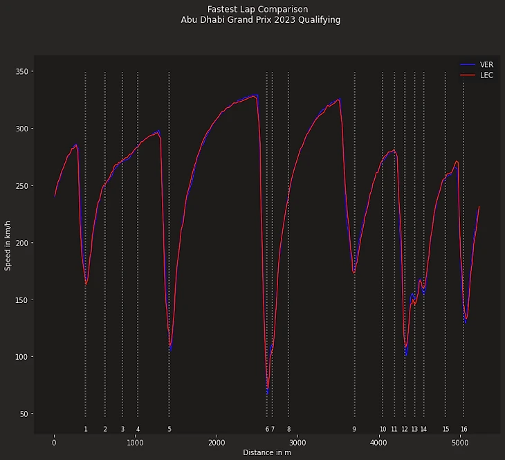 Сравним лучшие круги в квалификации Гран-при Абу-Даби 2023 года, в который раз сравним круги обладателя поул-позиции Шарля Леклера и Макса Ферстаппена .
