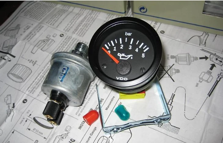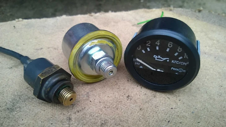 Рабочий процесс аварийного датчика давления масла предусматривает только два состояния. Для более строгого контроля применяется измеритель уровня текущего давления. Данные с контрольного датчика отображаются на специальном стрелочном указателе приборной панели.