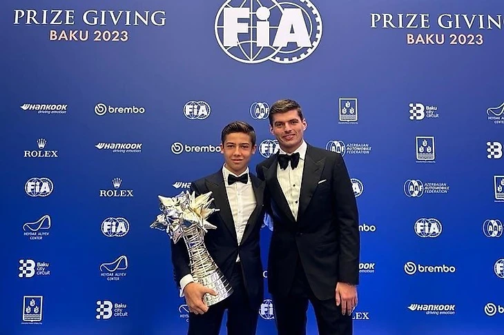 Ферстаппен вручил кубок картингисту из России на чествовании лучших гонщиков. Оба – чемпионы мира