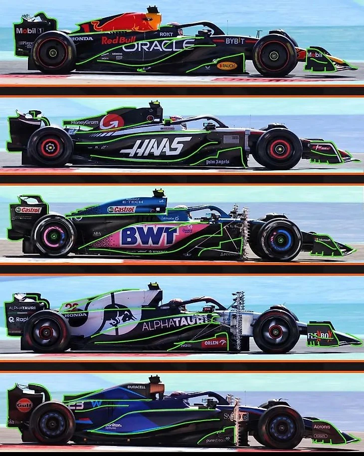 Но чемпионы тоже продолжили развиваться, пока остальные фактически начинали заново без галопирования. Победы Ферстаппена и «Ред Булл» стали даже сокрушительнее, и на Гран-при Монако «Мерседес» обновился в сторону RB19, на Гран-при Испании за ним последовала «Феррари», на Гран-при Австрии – «Макларен», и далее по ходу сезона то же самое сделали «Альпин», «Альфа Таури», «Хаас»… У кого-то новинки сработали, у кого-то не совсем, однако к концу 2023-го команды приехали в гибридном виде первоначальной концепции + сдвига в сторону RB19.