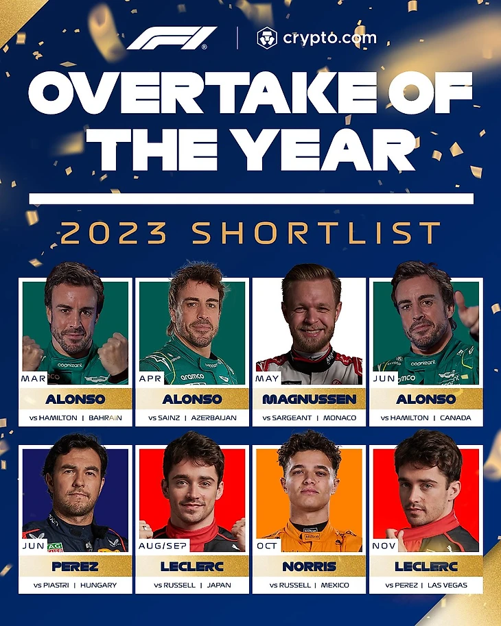 «Формула-1» ввела в 2021-м новый трофей – «обгон месяца». Фанаты в голосовании на официальном сайте выбирали победителя отрезка среди номинантов из классных атак с Гран-при предыдущего периода, и ему на месяц вручался специальный кубок.