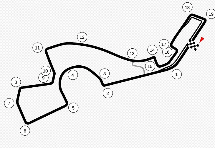 И поправьте уже наконец неправильную нумерацию поворотов на схеме старой конфигурации. От того, что у вас нарисовано, отказались ещё в 2014 или 2015 году. То, что на схеме обозначено как 3-й и 4-й повороты, ФИА давно стало считать одни поворотом - его началом и продолжением. Соответственно кружок с 3-м номером нужно вообще убрать, 4-й сделать 3-м, 5-й — 4-м и т.д., всего на трассе было 18 поворотов. Понимаю, что эта схема может уже никогда и не пригодится, но лучше поздно чем никогда исправить неточность, ха-ха.