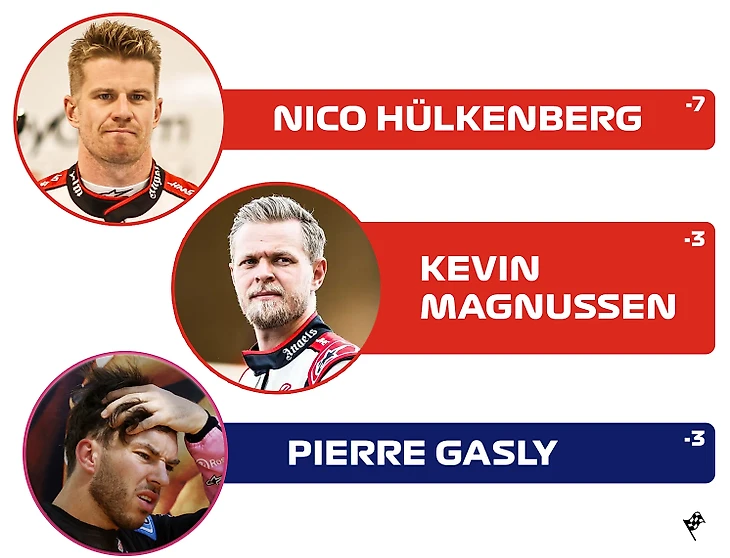 Нико Хюлькенберг усугубил свою стартовую неудачу, растеряв к финишу 7 позиций. Сразу трое гонщиков опустились в классификации на 3 строки: Кевин Магнуссен, Пьер Гасли и Оскар Пиастри.