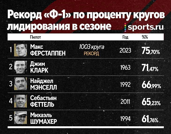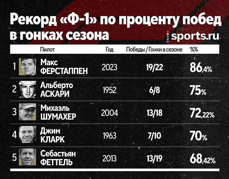 Макс Ферстаппен взял третий титул на стиле: 19 побед, из них 10 – подряд, 1003 круга лидирования… Но главная – свержение рекорда Альберто Аскари 71-летней давности по проценту побед!