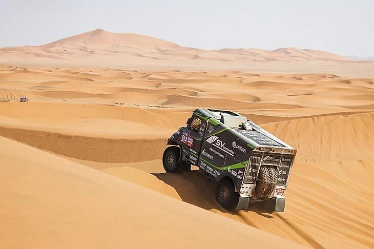 Можно отметить команду Ваидотаса Паскявичуса. После ухода «КАМАЗа» и «МАЗа» литовцы остались единственными представителями постсоветского пространства, разбавив нидерландско-чешское засилье. К слову, на дебютном «Дакаре» в 2022-м Паскявичус едва не приехал в топ-10, но в этом году его старенькая «Татра Ямал» едет на дне третьей десятки грузовиков.